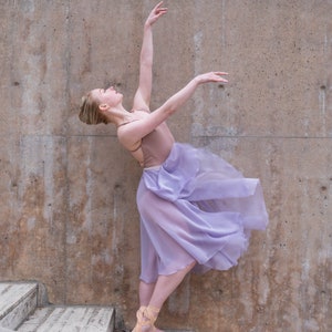 This beautiful rehearsal skirt is made of a light flowy chiffon fabric, and creates a flattering line on all dancers!
