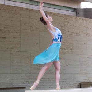 Chiffon, the traditional fabric used in a ballerina's skirt is typically made of Polyester, Sophie and ACC decided to go with this particular fabric because it is a more sustainable option for the traditional look. rPET reduces the need for primary extraction and uses 30-50% less energy to produce.