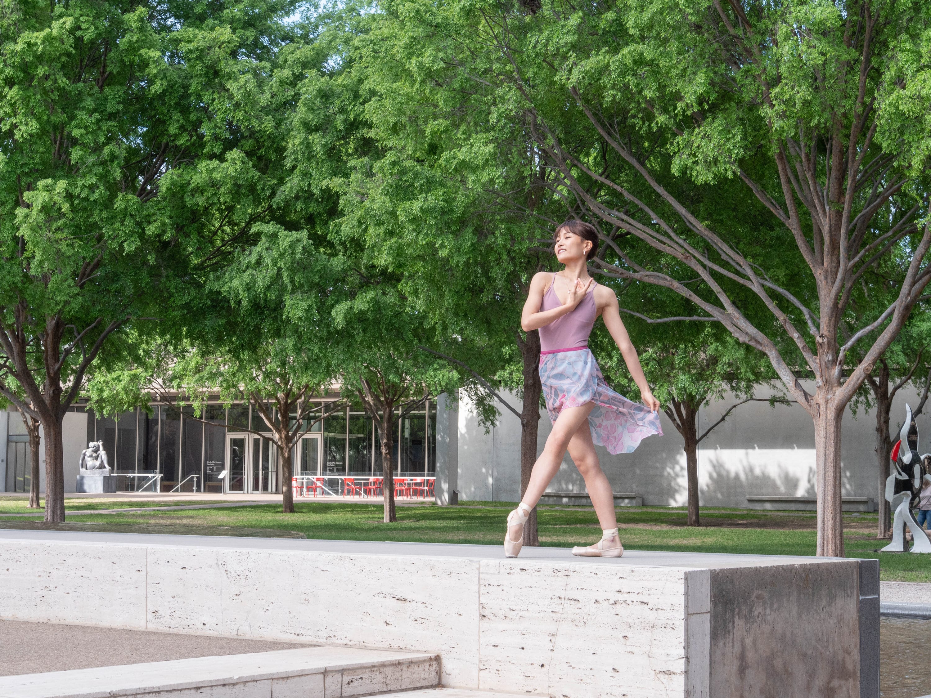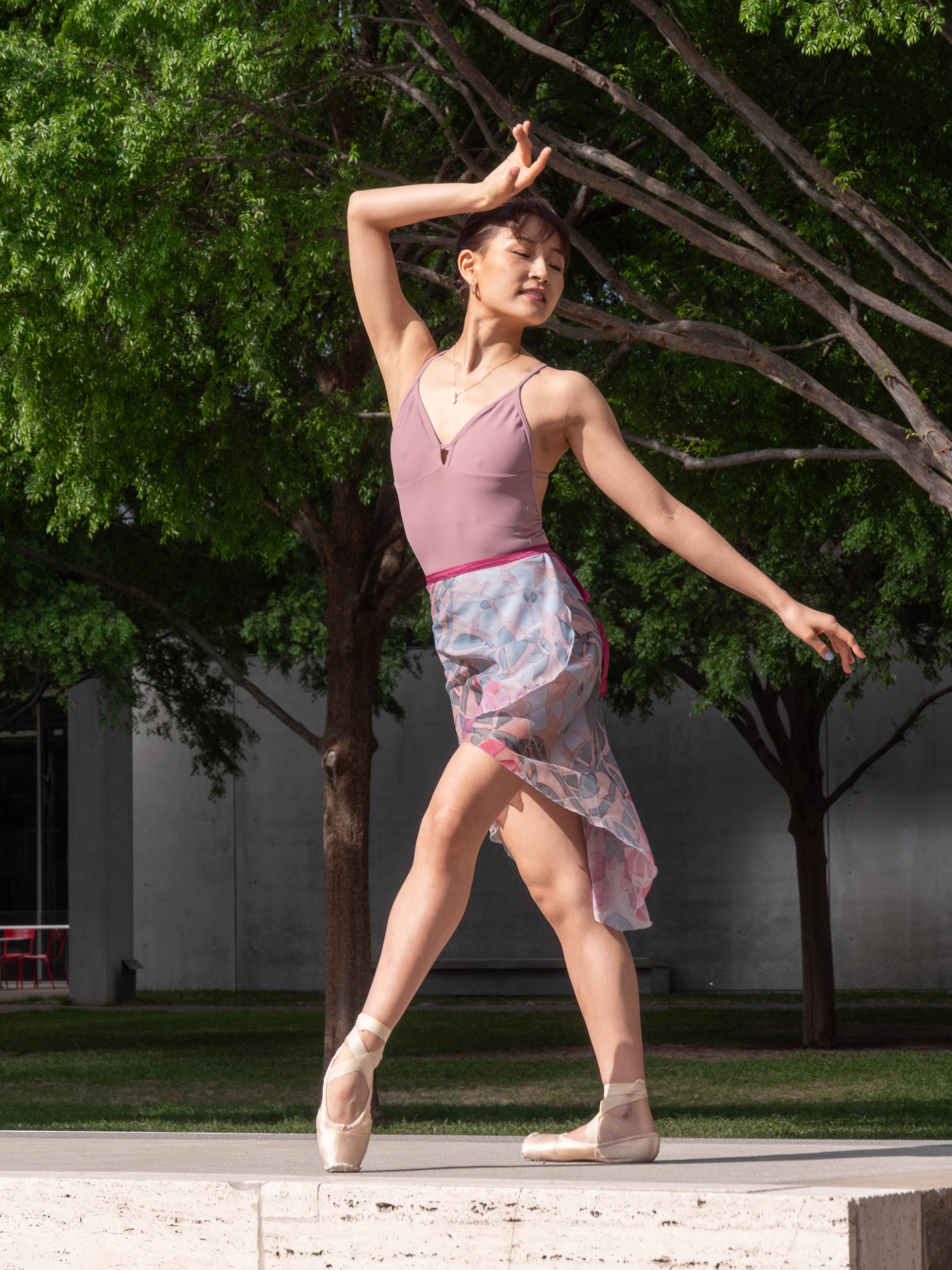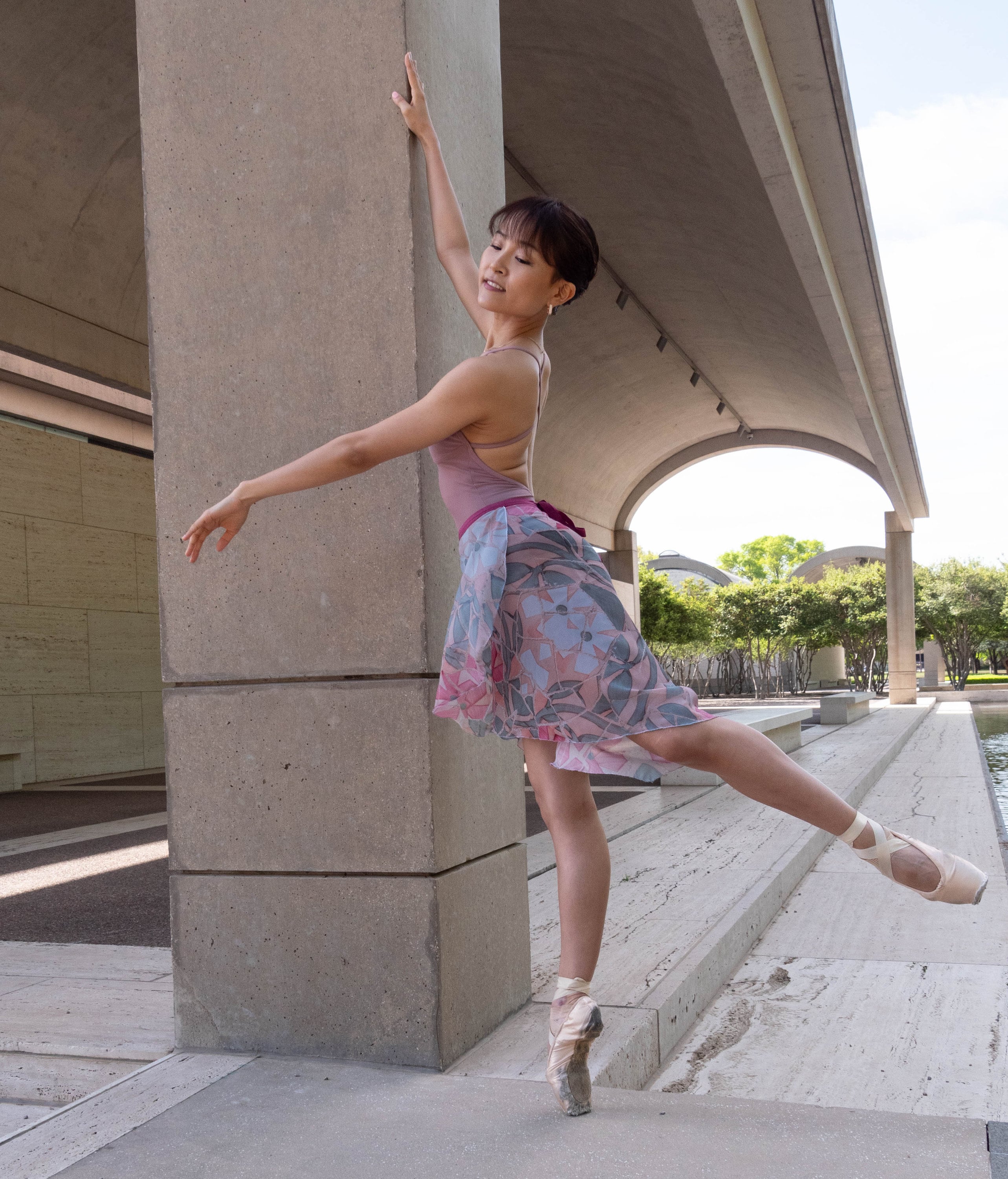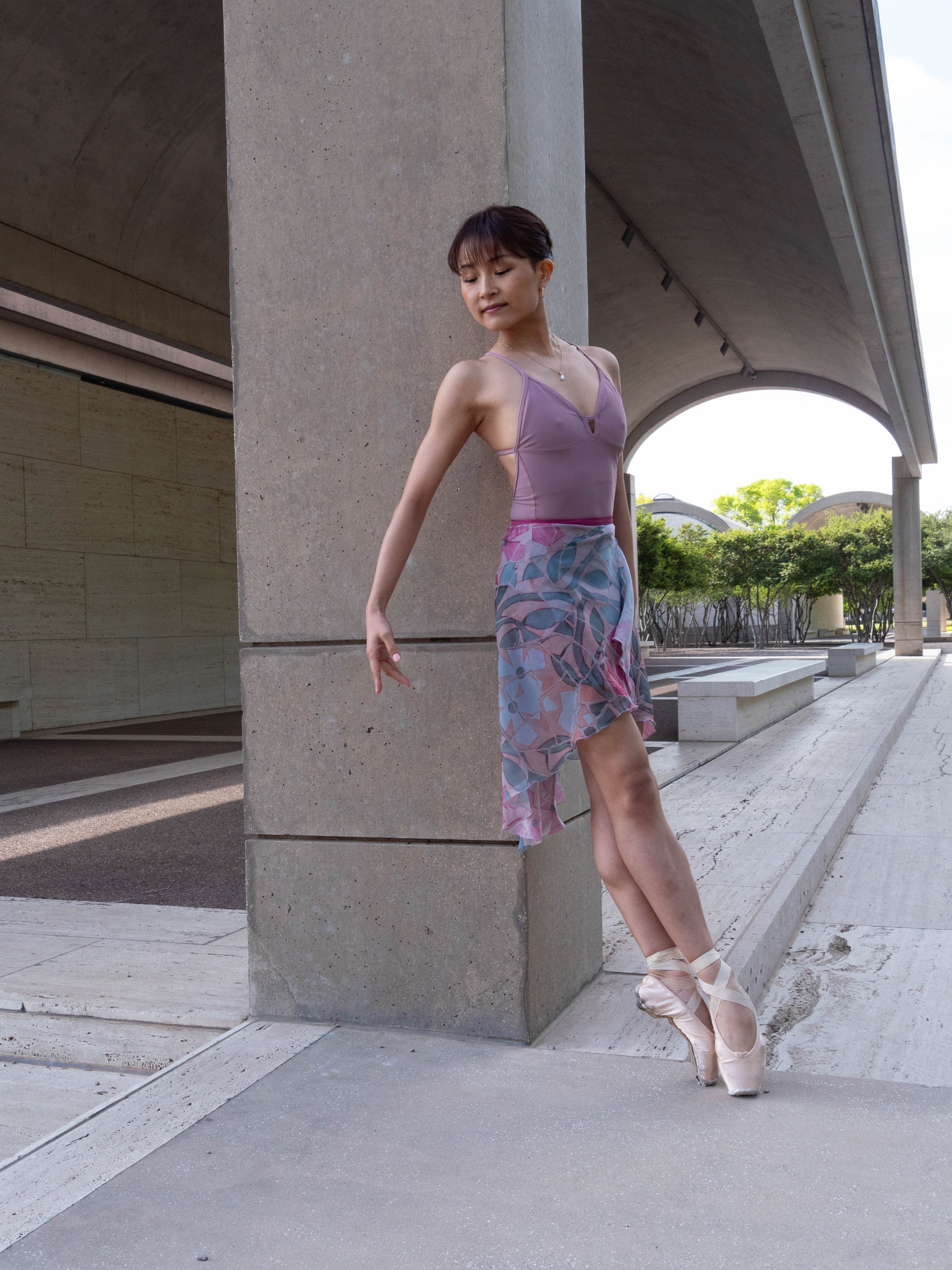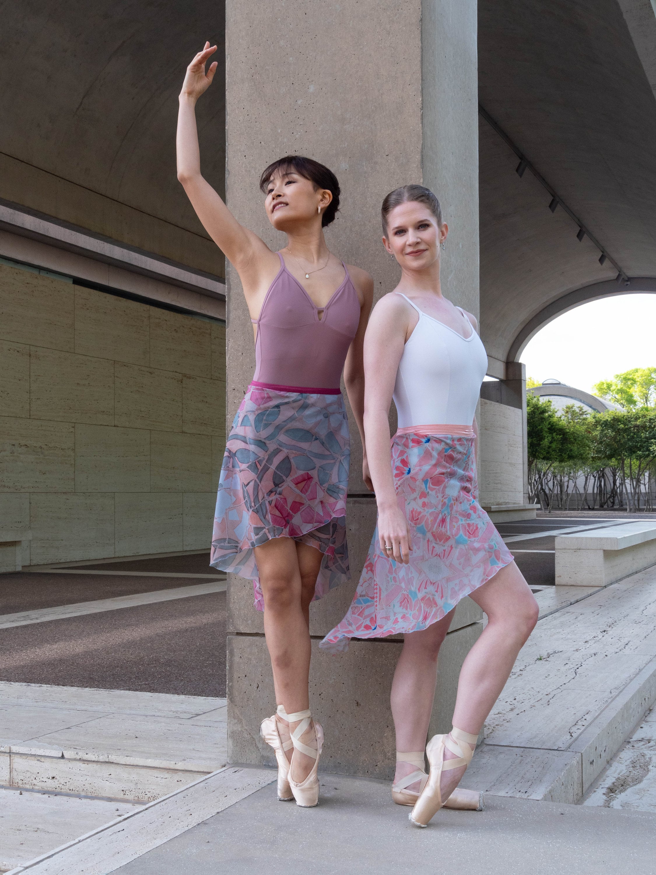 Chiffon, the traditional fabric used in a ballerina's skirt is typically made of Polyester, Sophie and ACC decided to go with this particular fabric because it is a more sustainable option for the traditional look. rPET reduces the need for primary extraction and uses 30-50% less energy to produce.
