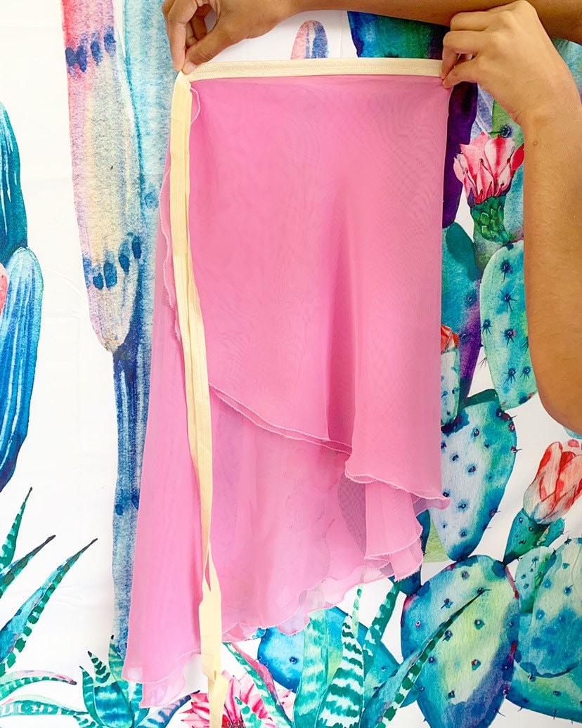 Chiffon, the traditional fabric used in a ballerina's skirt is typically made of Polyester, Sophie and ACC decided to go with this particular fabric because it is a more sustainable option for the traditional look. rPET reduces the need for primary extraction and uses 30-50% less energy to produce.